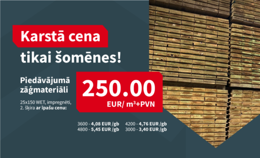 Ierobežots preču daudzums par īpašu cenu – tikai 150 EUR/m³ + PVN.